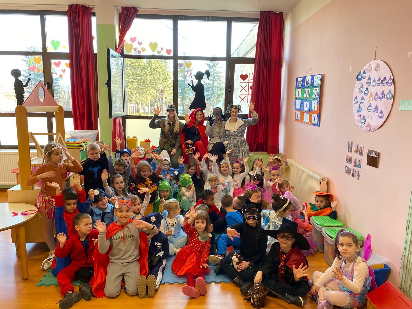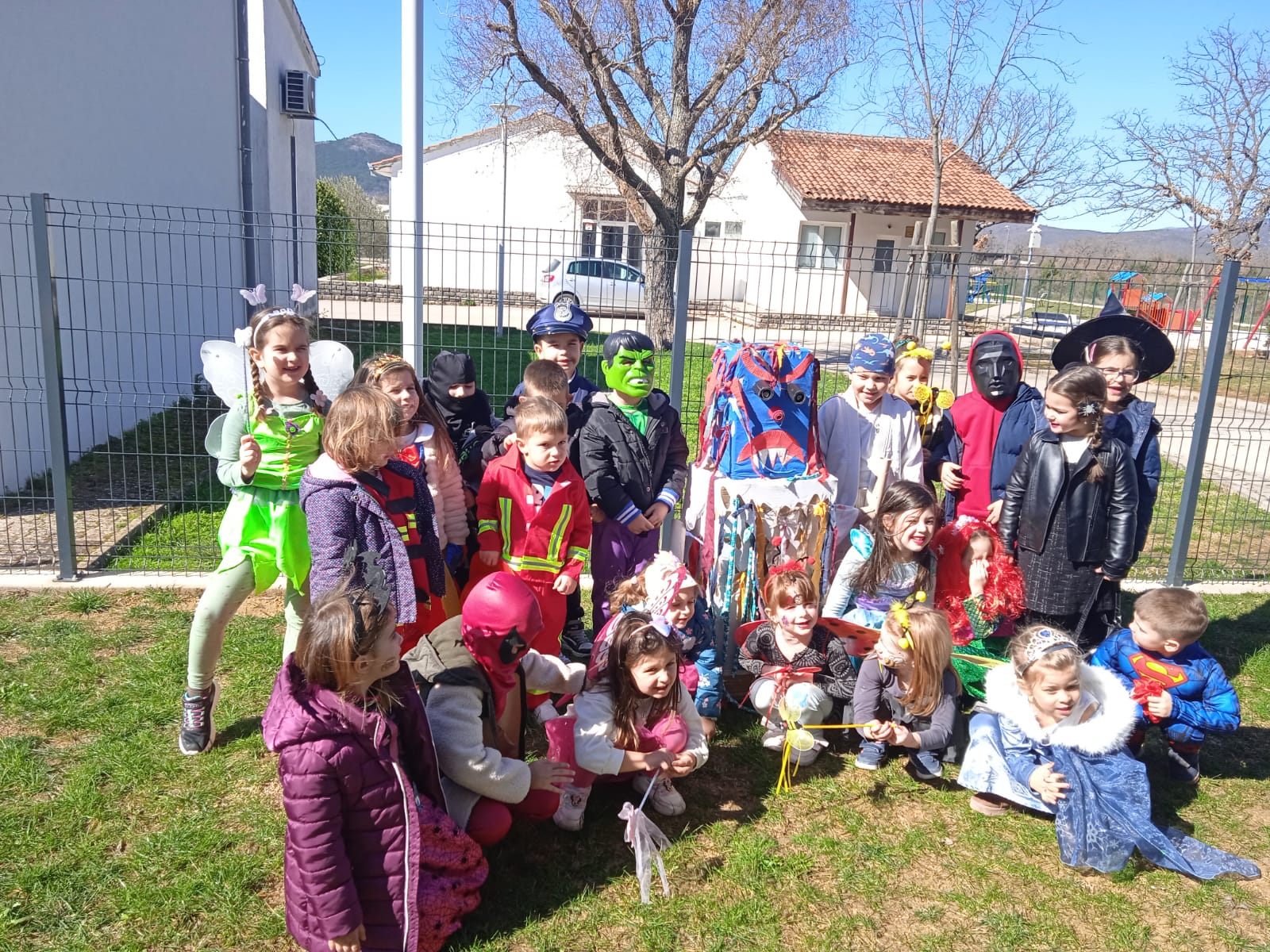 Dana 4. ožujka u našem su vrtiću održane karnevalske svečanosti. Djeca i odgojiteljice maskirali su se prema vlastitim željama. Aktivnosti koje su se provodile u pojedinim odgojnim skupinama jesu: samostalna izrada maski za lice, biranje najbolje maske tajnim glasanjem, igre pretvaranja, glazbeni kipovi, maskirana povorka prolazi kroz naselje, crtanje vlastitih strahova koji su na kraju bili dio krnje te spaljivanje samog krnje. Ove su godine sve odgojne skupine odlučile da će krnju predstavljati zli čarobnjak Zlik kojega smo upoznali u mjuziklu “Složna obitelj”. Odgojiteljice popodnevnih odgojnih skupina priredile su djeci iznenađenje – dramatizaciju Crvenkapice. Također, majka dječaka I. Z. popodnevnoj odgojnoj skupini pripremila je ukusne fritule i djeca su uživala.